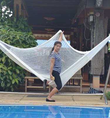 สวัสดี!! ฉันชื่อ เมย์ ฉันชอบและรักการถักทอเปลญวนด้วยมือ ฉันมีประสบการณ์ถักทอเปลญวนมากกว่า 10 ปี เปลญวนของเราผลิตโดยชนเผ่ากลุ่มเล็กๆในภาคเหนือ ชนเผ่าอาข่า ชนเผ่าลาหู่ ชนเผ่าขมู และคนเมืองในภาคเหนือ ฉันภูมิใจที่จะนำเสอนเปลญวนที่ดีที่สุดในประเทศไทย ที่คุณสามารถซื้อได้